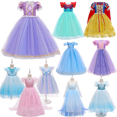 女童儿童节公主裙贝儿灰姑娘长发乐珮白雪公主爱沙睡美人礼服装